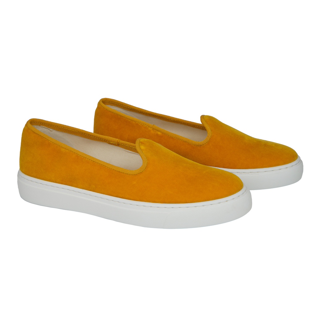 ViBi Venezia Slip Ons di velluto, Interno in canvas e suola in gomma. Made In Italy